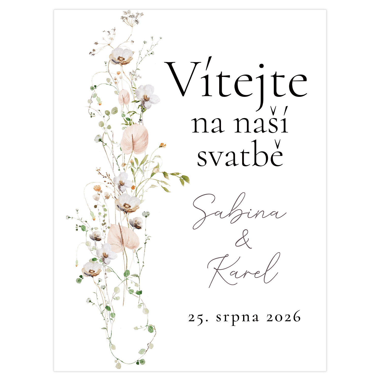 Privítajte svadobných hostí, ako sa má. Vítacia ceduľa v dizajne svadobného oznámenia č. 359 sa o to postará.